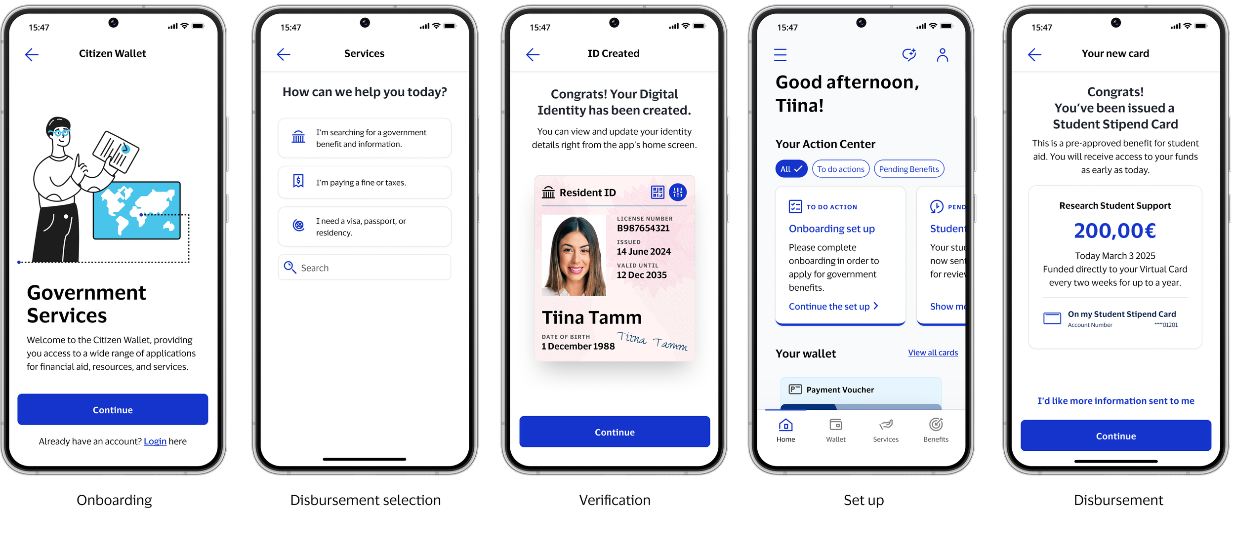 Allows verified citizens to apply for and receive additional benefits directly in the wallet